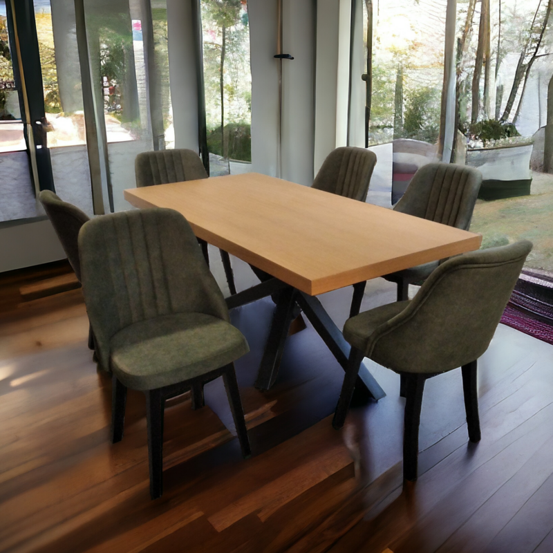 Zestaw złożony z: Stół Pająk 1 w rozmiarze 160cm na 90cm, z dwiema wkładkami o długościach 40 cm, które umożliwiają wydłużenie stołu do 240cm. Nogi stołu wykonane są ze stali. Sześć sztuk krzeseł Krystian 1. Konfigurator umożliwia stworzenie 10800 unikalnych wariantów kolorystycznych danego kompletu. Czas realizacji 7-14 dni.
