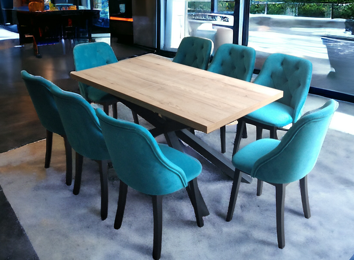 - Stół Pająk 1 w rozmiarze 160cm na 90cm, z dwiema wkładkami o długościach 40 cm, które umożliwiają wydłużenie stołu do 240cm. Nogi stołu wykonane są ze stali.